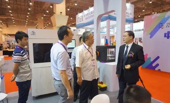本屆3D打印節(jié)展會主辦方青島三迪時(shí)空董事長李培學(xué)陪同青島市政協(xié)副主席、廣州增材協(xié)會會長參觀了數(shù)造展位現(xiàn)場。